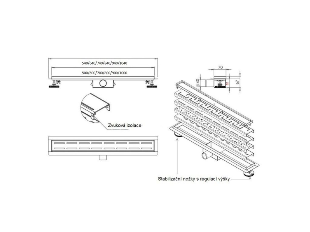 Odtokové potrubí o průměru 40/50 mm s propustností sifonu 50 l za minutu. Sifon je vybaven odnímatelným filtrem na lapání nečistot a protizápachovou přepážkou. Montážní hloubka 52 mm. Díky použití odtokového sprchového žlabu docílíte rychlého a snadného čištění podlahy Vaší koupelny.