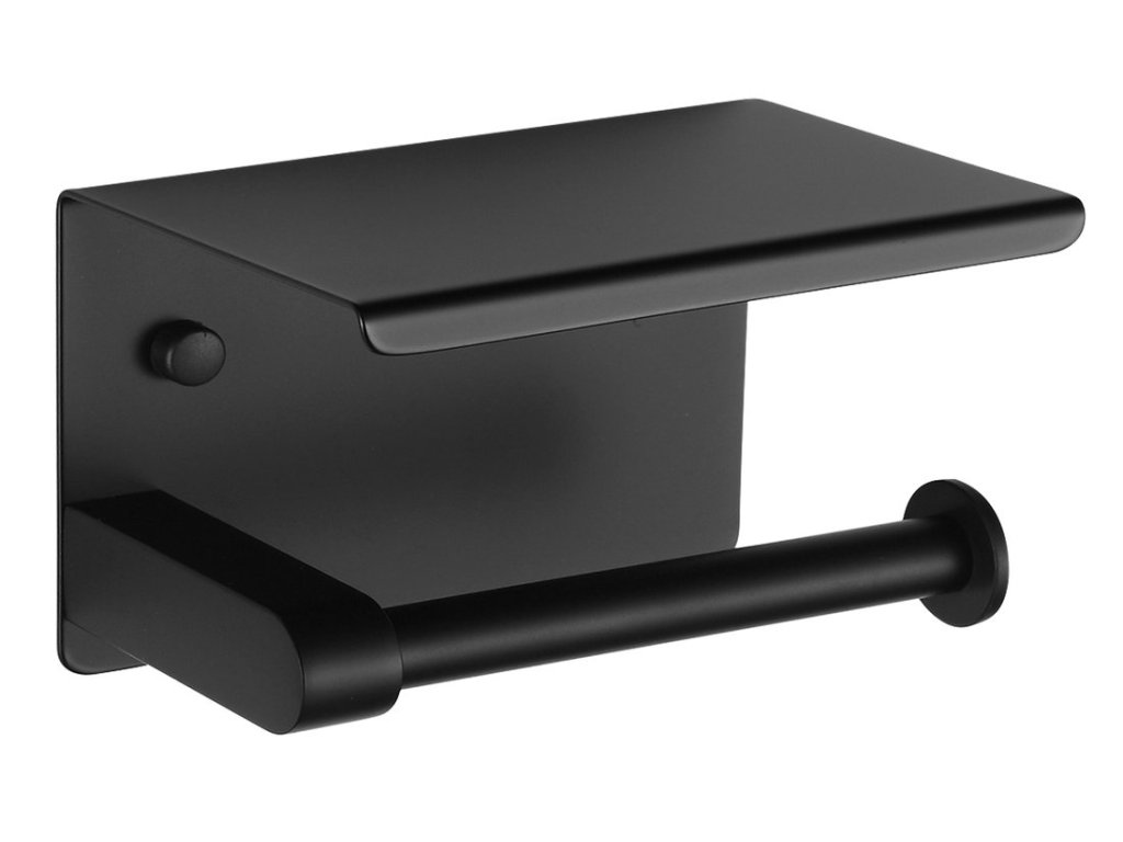 Dvojitý držák toaletního papíru s poličkou 30cm, černá mat