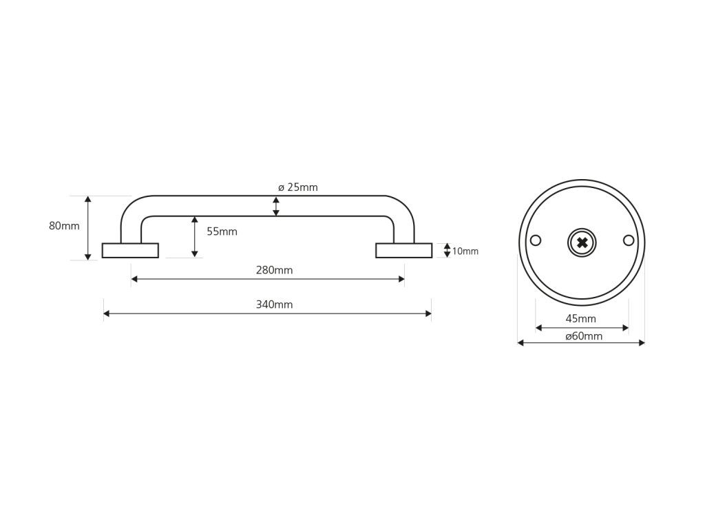 HANDICAP opěrné pevné madlo tvar U 813mm, nerez lesk