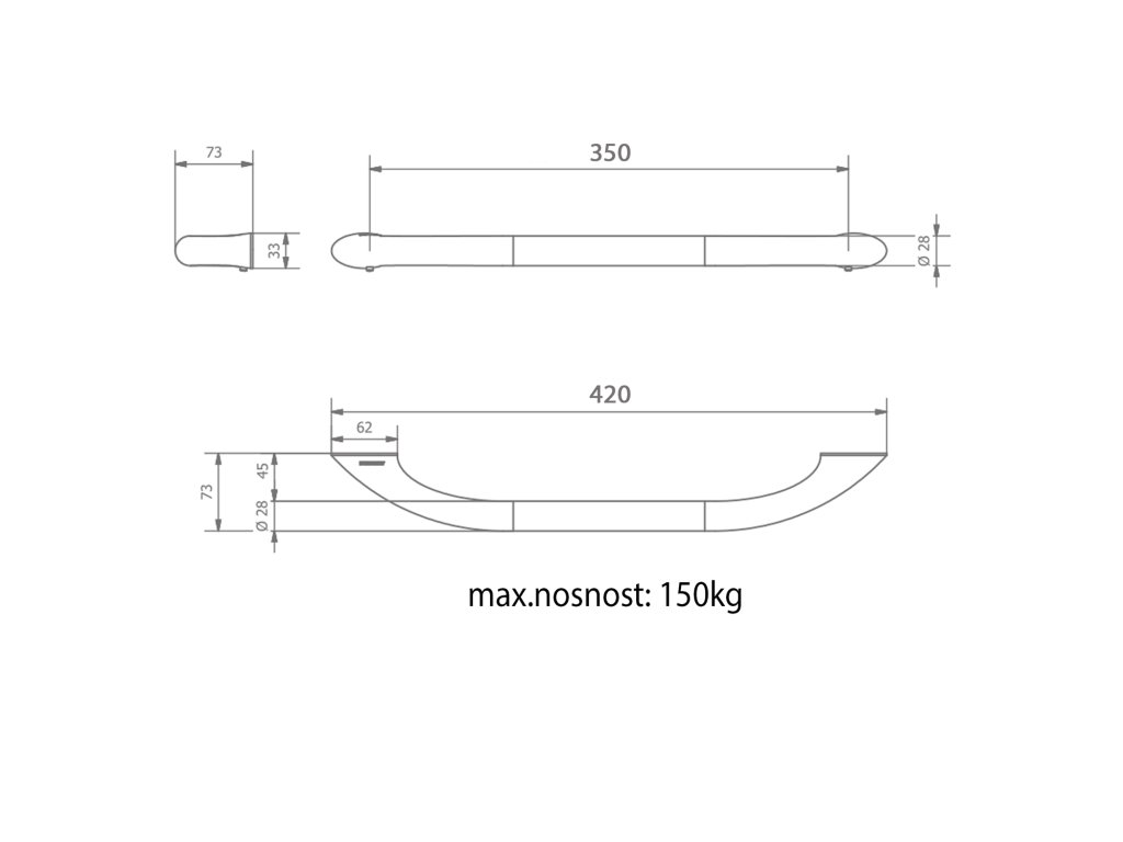 HANDICAP opěrné madlo PRAVÉ 500mm, bílá