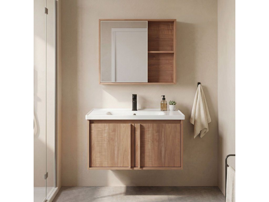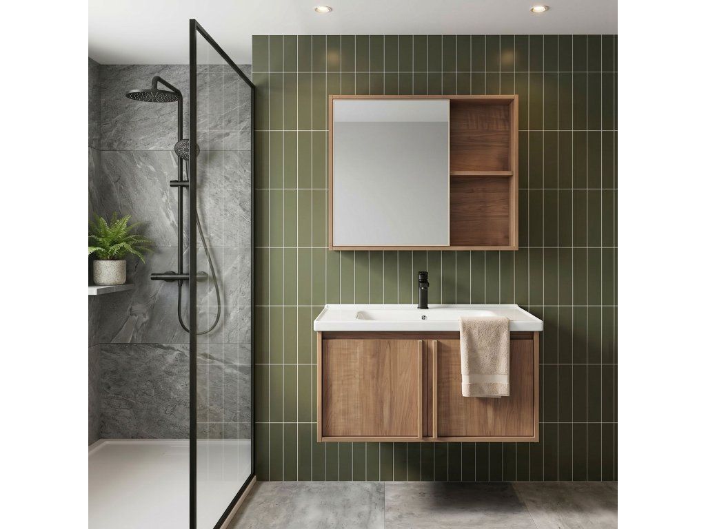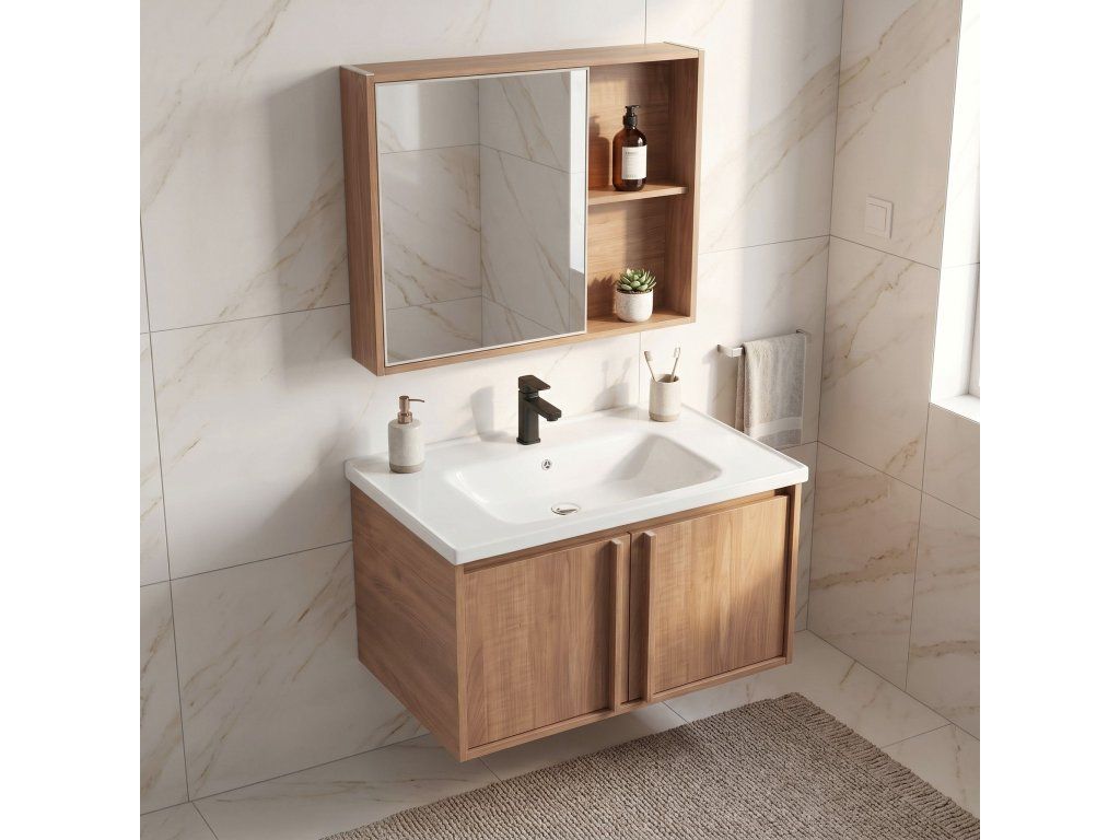 Sada koupelnového nábytku Gama je komplexní řešení, které umožňuje ucelené a funkční uspořádání koupelny. Sestava byla navržena s ohledem na maximální využití dostupného prostoru a spojuje jednoduchý tvar s velkým množstvím úložného prostoru.Závěsná umyvadlová skříňka – konstrukce montovaná na stěnu usnadňuje úklid koupelny a dodává interiéru lehkost. Díky výrobě z odolného plastu je nábytek lehký, stabilní a zcela necitlivý vůči vodní páře nebo stříkancům.Keramické umyvadlo – součástí sady je sladěné bílé umyvadlo s otvorem pro baterii a přepadem. Hladký povrch keramiky zajišťuje snadné čištění a je odolný proti poškrábání a chemikáliím.Zrcadlová skříňka s policemi – funkční nástěnný modul, do kterého se za zrcadlovou plochu vejdou nezbytné pomůcky. Další otevřené boční police umožňují pohodlné uložení věcí, které se vždy vyplatí mít po ruce.Plast imitující dřevo – použitý materiál věrně odráží strukturu a barvy přírodního dřeva.Jednoduchá montáž a funkčnost – sada Gama je hotové řešení do každé koupelny, kde záleží na jednoduchém tvaru, snadném udržování čistoty a dlouhodobé životnosti materiálů.Výběrem sady nábytku Gama získáte hotové integrované vybavení, které uspořádaně organizuje každodenní prostor a zajišťuje pohodlí a úhledný vzhled koupelny.