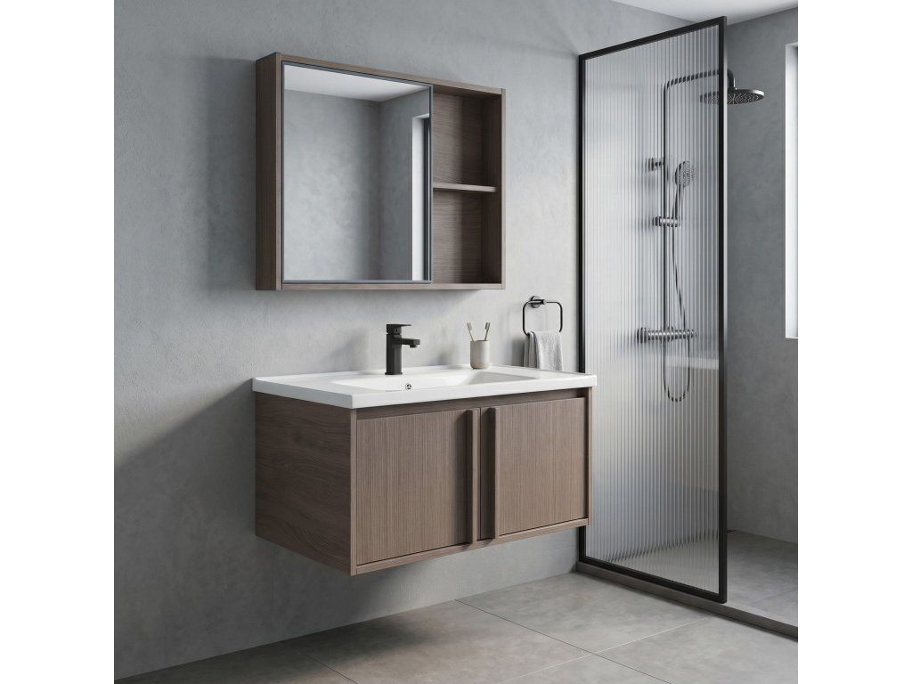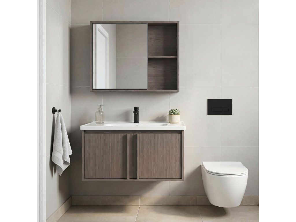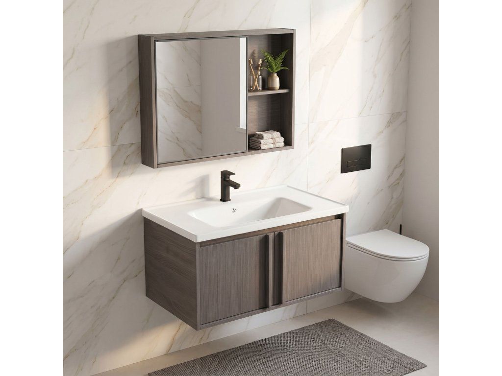 Sada koupelnového nábytku Gama je komplexní řešení, které umožňuje ucelené a funkční uspořádání koupelny. Sestava byla navržena s ohledem na maximální využití dostupného prostoru a spojuje jednoduchý tvar s velkým množstvím úložného prostoru.Závěsná umyvadlová skříňka – konstrukce montovaná na stěnu usnadňuje úklid koupelny a dodává interiéru lehkost. Díky výrobě z odolného plastu je nábytek lehký, stabilní a zcela necitlivý vůči vodní páře nebo stříkancům.Keramické umyvadlo – součástí sady je sladěné bílé umyvadlo s otvorem pro baterii a přepadem. Hladký povrch keramiky zajišťuje snadné čištění a je odolný proti poškrábání a chemikáliím.Zrcadlová skříňka s policemi – funkční nástěnný modul, do kterého se za zrcadlovou plochu vejdou nezbytné pomůcky. Další otevřené boční police umožňují pohodlné uložení věcí, které se vždy vyplatí mít po ruce.Plast imitující dřevo – použitý materiál věrně odráží strukturu a barvy přírodního dřeva.Jednoduchá montáž a funkčnost – sada Gama je hotové řešení do každé koupelny, kde záleží na jednoduchém tvaru, snadném udržování čistoty a dlouhodobé životnosti materiálů.Výběrem sady nábytku Gama získáte hotové integrované vybavení, které uspořádaně organizuje každodenní prostor a zajišťuje pohodlí a úhledný vzhled koupelny.
