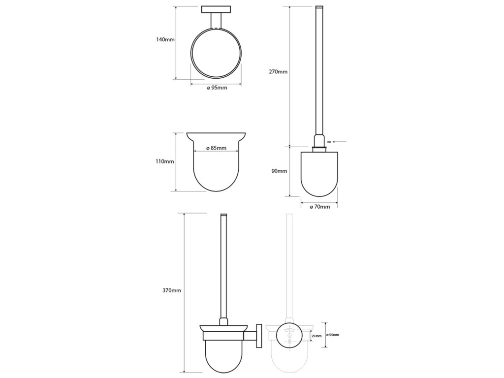 X-ROUND BLACK WC štětka na postavení, černá mat