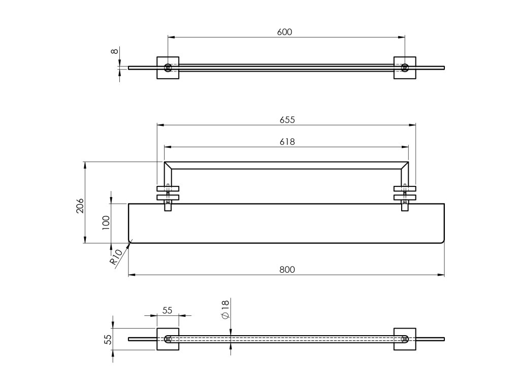 X-SQUARE police s držákem osušky na skleněnou zástěnu, chrom