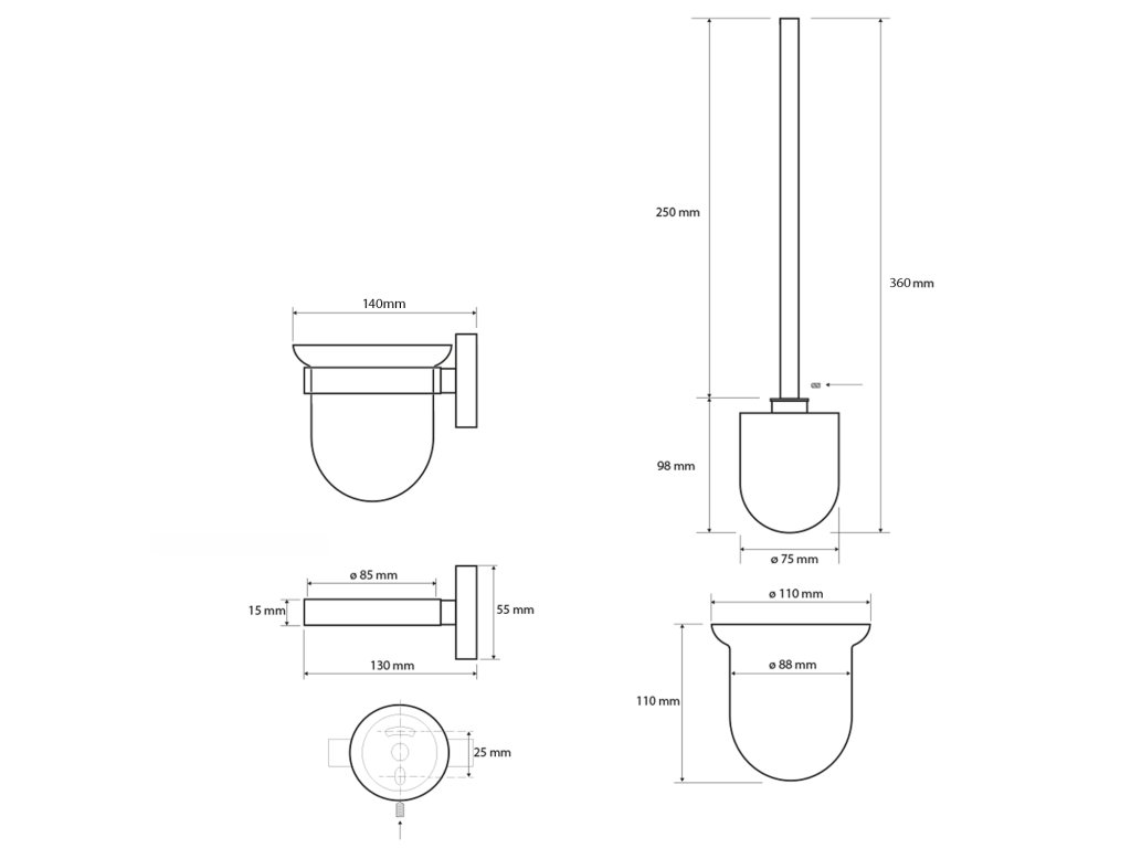X-ROUND držák kartáčků včetně sklenic, mléčné sklo, chrom