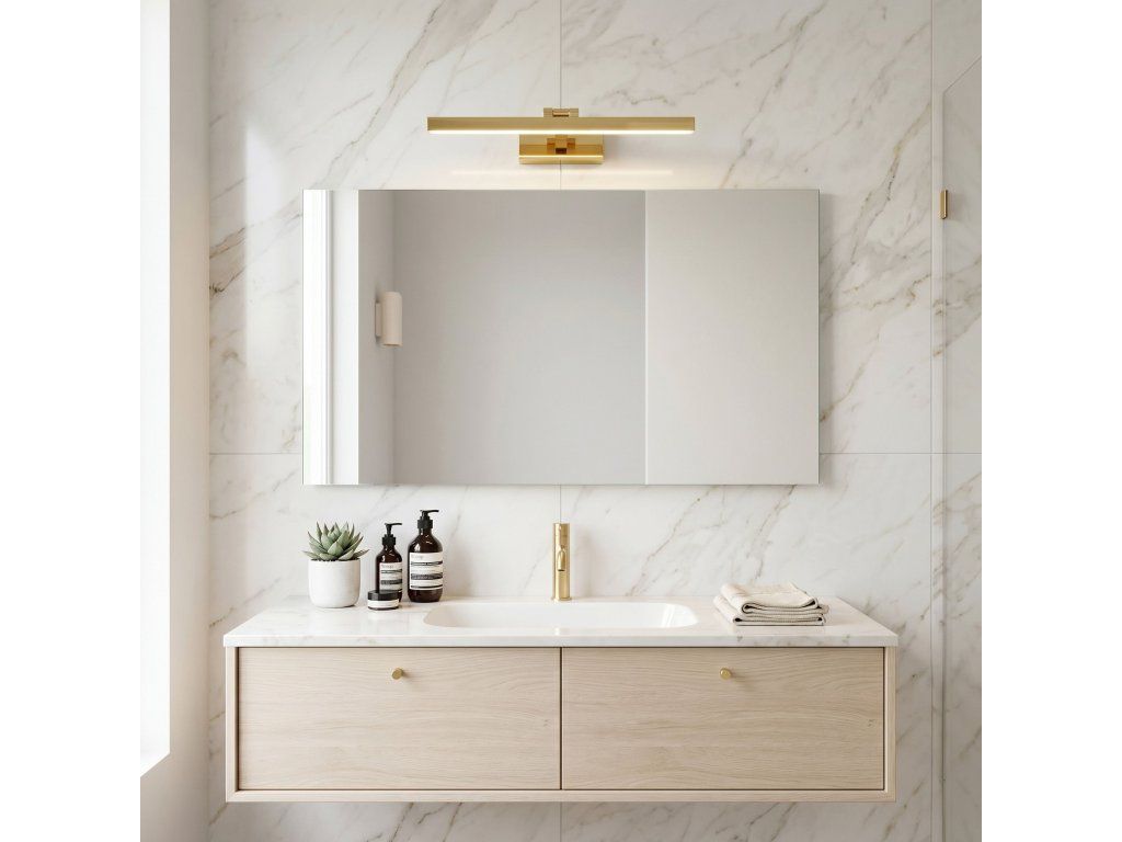Podtrhněte krásu svých zrcadel a obrazů díky nástěnnému LED svítidlu v provedení Zlatý lesk. Toto elegantní svítidlo je ideálním spojením luxusní estetiky s funkčností, které do vašeho interiéru vnese šperkový lesk. Díky nastavitelné hlavici a neutrální barvě světla zajišťuje perfektní dosvětlení detailů a stává se efektním prvkem moderní koupelny, předsíně nebo obývacího pokoje.Provedení Zlatý lesk – lesklý, zrcadlový povrch krásně odráží světlo a dodává interiéru prestižní charakter ve stylu glamour nebo modern classic.Nastavení úhlu sklonu – pohyblivá hlavice umožňuje přesné nastavení směru světla, což umožňuje ideální osvětlení plochy zrcadla nebo nástěnné expozice.Neutrální barva světla – zajišťuje přirozené podání barev, což je klíčové pro pohodlí očí a přesné úkony při každodenní péči.Integrovaný LED zdroj – moderní diody nabízejí vysoký světelný výkon při minimální spotřebě energie, čímž šetří vaši peněženku i životní prostředí.Minimalistická, štíhlá forma – moderní design založený na geometrických liniích dodává svítidlu lehkost a styl.Solidní konstrukce – vyrobeno z vysoce kvalitních materiálů, které zaručují barevnou stálost a odolnost při každodenním používání.
