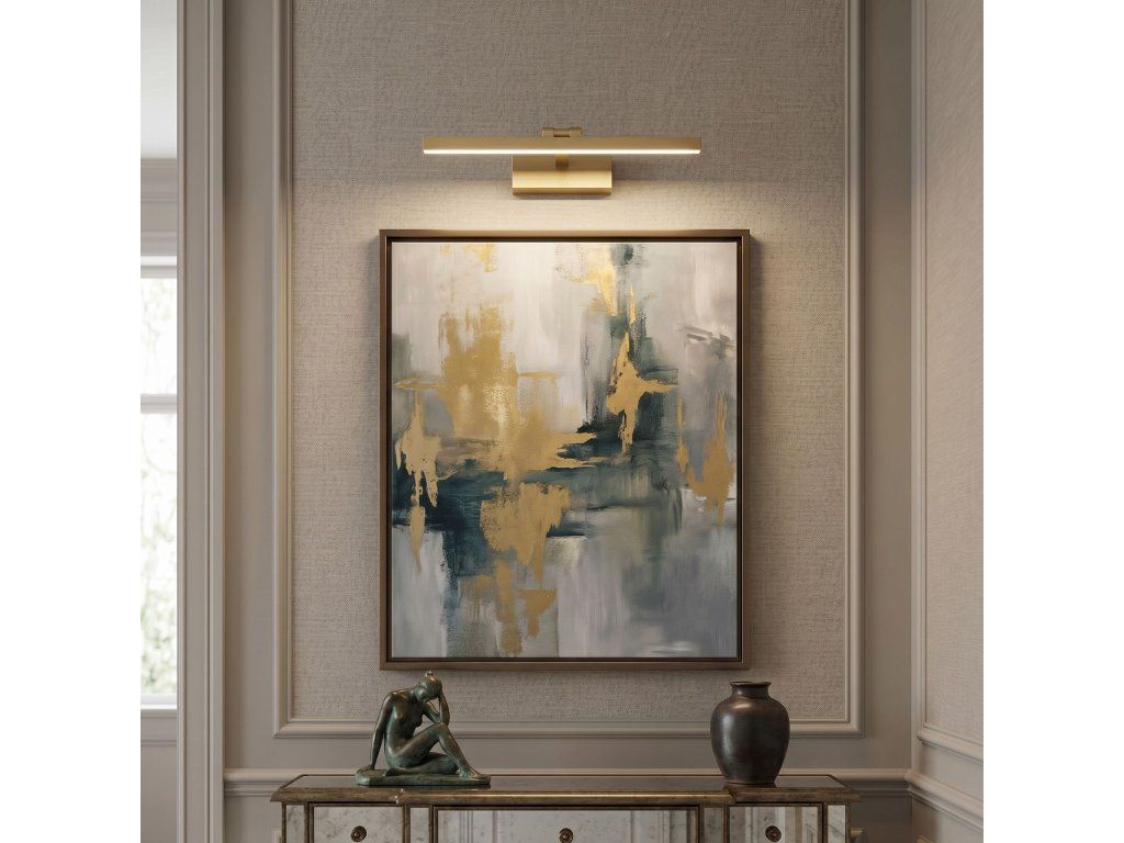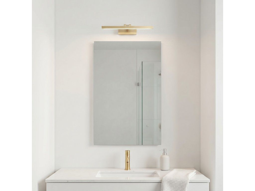 Podtrhněte krásu svých zrcadel a obrazů díky nástěnnému LED svítidlu v provedení kartáčované zlato. Toto elegantní svítidlo o šířce 40 cm je ideálním spojením moderního minimalismu a funkčnosti, které do vašeho interiéru vnese luxusní akcent. Díky nastavitelné hlavici a neutrální barvě světla zajišťuje nástěnné svítidlo perfektní osvětlení detailů a stává se nepostradatelným prvkem moderní koupelny, obývacího pokoje nebo ložnice.Povrchová úprava kartáčované zlato – ušlechtilý matný povrch dodává interiéru eleganci a skvěle ladí s moderní armaturou a doplňky.Nastavení úhlu sklonu – pohyblivá hlavice umožňuje přesné nastavení směru světla, což je klíčové při osvětlování zrcadla nebo vystavování uměleckých děl.Neutrální barva světla – světlo s barvou blízkou dennímu světlu zajišťuje přirozené podání barev, ideální pro každodenní hygienu a líčení.Integrovaný LED zdroj – energeticky úsporné diody zaručují dlouhou životnost a nízkou spotřebu energie při zachování vysokého světelného výkonu.Minimalistická, geometrická forma – jednoduché tělo založené na přímých liniích dokonale zapadá do loftového, moderního i glamour stylu.Solidní kovová konstrukce – vysoce kvalitní materiály zajišťují odolnost a neměnný vzhled po celá léta.