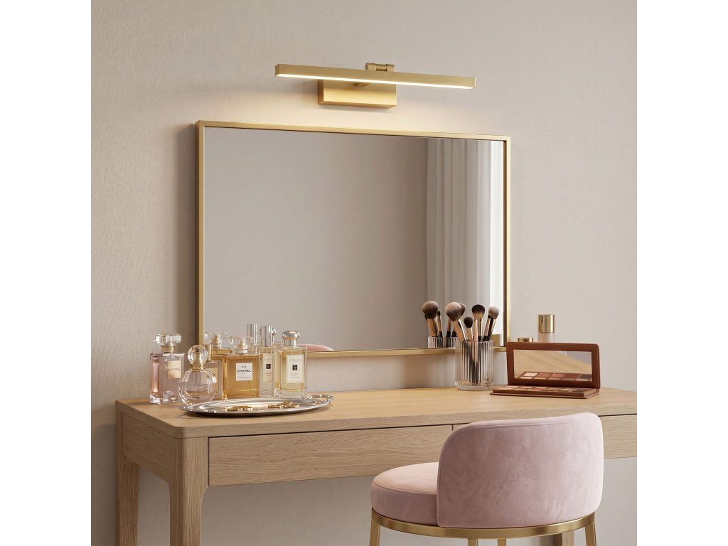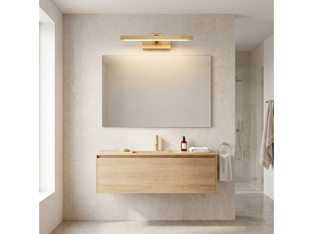 Podtrhněte krásu svých zrcadel a obrazů díky nástěnnému LED svítidlu v provedení kartáčované zlato. Toto elegantní svítidlo o šířce 60 cm je ideálním spojením moderního minimalismu a funkčnosti, které do vašeho interiéru vnese luxusní akcent. Díky nastavitelné hlavici a neutrální barvě světla zajišťuje nástěnné svítidlo perfektní osvětlení detailů a stává se nepostradatelným prvkem moderní koupelny, obývacího pokoje nebo ložnice.Povrchová úprava kartáčované zlato – ušlechtilý matný povrch dodává interiéru eleganci a skvěle ladí s moderní armaturou a doplňky.Nastavení úhlu sklonu – pohyblivá hlavice umožňuje přesné nastavení směru světla, což je klíčové při osvětlování zrcadla nebo vystavování uměleckých děl.Neutrální barva světla – světlo s barvou blízkou dennímu světlu zajišťuje přirozené podání barev, ideální pro každodenní hygienu a líčení.Integrovaný LED zdroj – energeticky úsporné diody zaručují dlouhou životnost a nízkou spotřebu energie při zachování vysokého světelného výkonu.Minimalistická, geometrická forma – jednoduché tělo založené na přímých liniích dokonale zapadá do loftového, moderního i glamour stylu.Solidní kovová konstrukce – vysoce kvalitní materiály zajišťují odolnost a neměnný vzhled po celá léta.