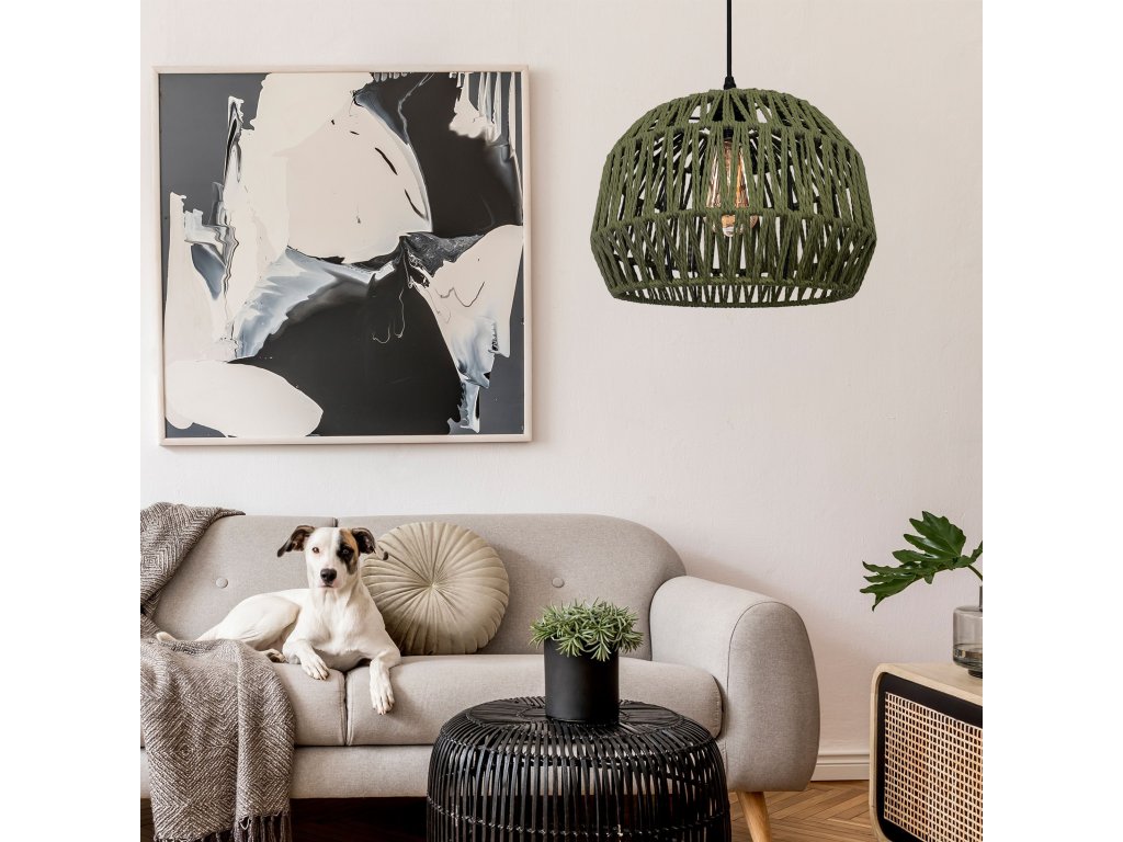 Tato zelená boho lampa vyrobená z jutového provázku je dokonalým spojením přírodních materiálů a moderního designu. Jeho prolamovaná struktura jemně rozptyluje světlo a vytváří v místnosti útulnou atmosféru. Perfektní pro interiéry inspirované přírodou, bude dobře fungovat v obývacích pokojích, ložnicích a jídelnách a dodá jedinečný charakter každému uspořádání.