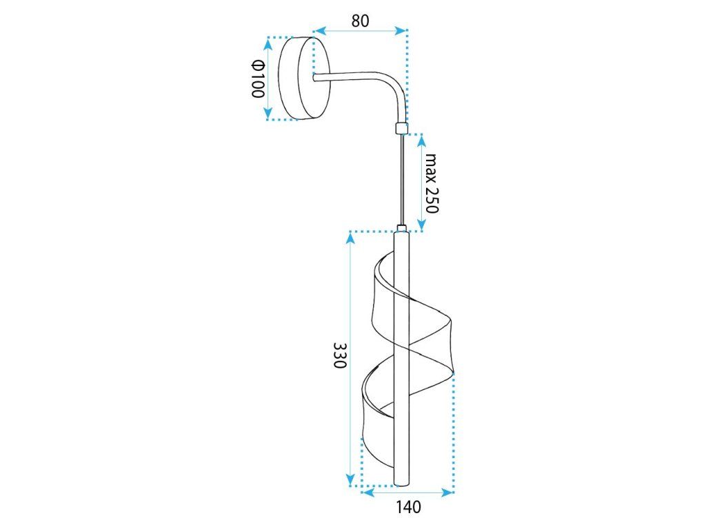 Moderní nástěnné svítidlo s lehkou, štíhlou formou, které zaujme dekorativním detailem v podobě spirálovitě vedeného transparentního světelného prvku. Kovová konstrukce ve zlatém provedení dodává celku elegantní charakter a vertikální uspořádání svítidla působí mimořádně stylově a jemně.