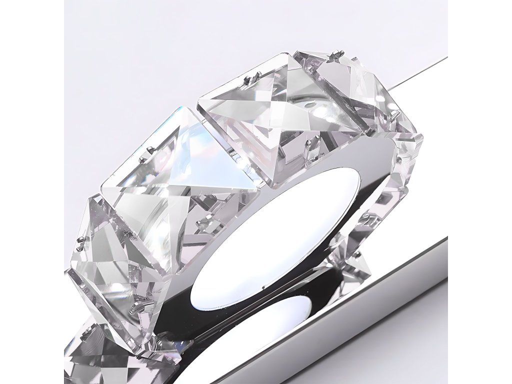 Svítidlo je vybaveno kulatými stínidly vyrobenými z prvků broušených do podoby křišťálu, které krásně rozptylují světlo. Díky tomu vznikají jemné, vícerozměrné světelné odlesky, které prostoru dodávají elegantní lesk a výjimečnou atmosféru. Světlo odrážející se od fazetovaných ploch vytváří efekt luxusu a lehkosti, typický pro glamour interiéry.