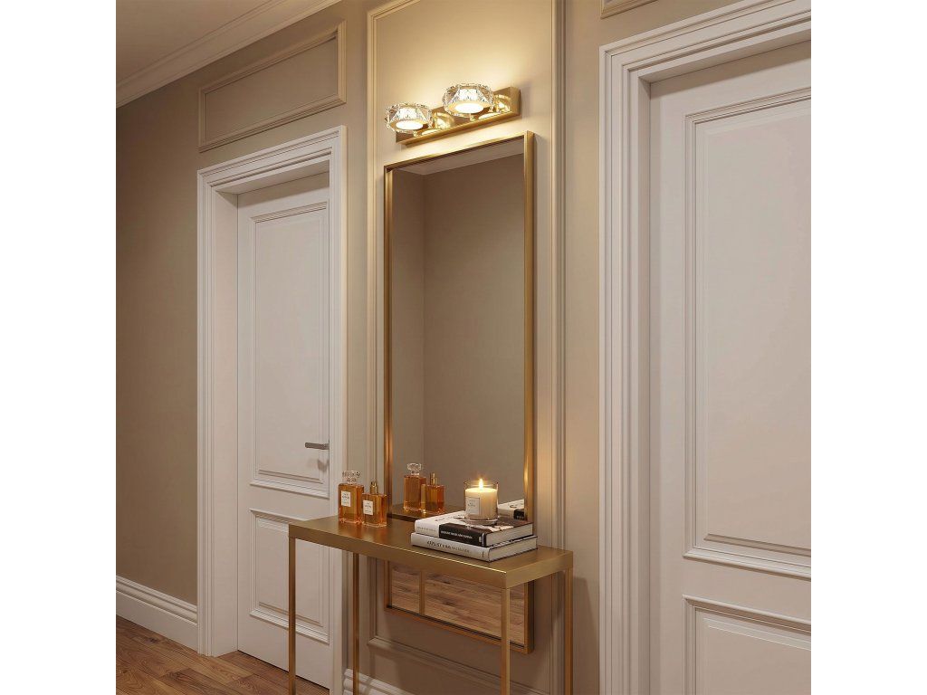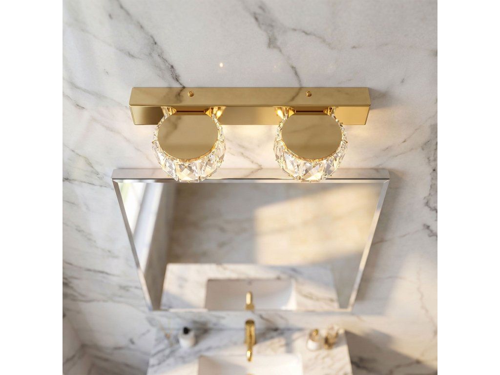Nástěnné svítidlo je vybaveno kulatými stínidly vyrobenými z prvků broušených do podoby křišťálu, které krásně rozptylují světlo. Paprsky pronikající skrz ně vytvářejí na stěnách i v okolí působivé světelné odlesky a vnášejí do interiéru příjemnou, náladovou atmosféru plnou lesku.
