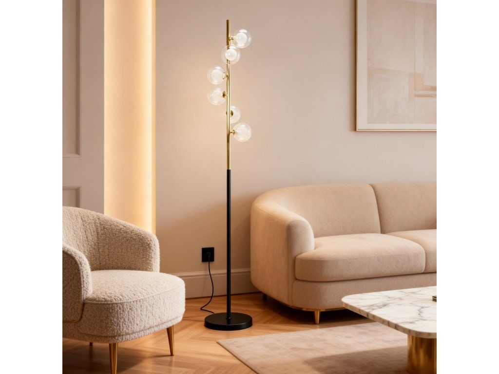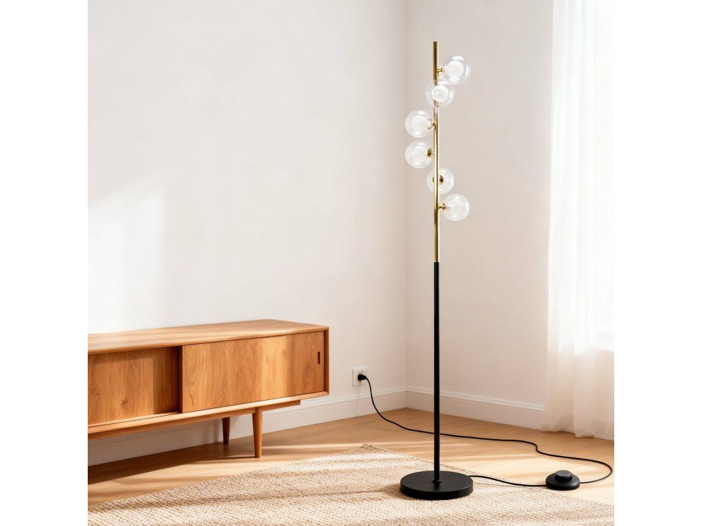 Lampa je vyrobena převážně z kovu. Výška svítidla je pevná, skvěle poslouží jako podpůrné, dekorativní nebo funkční světlo. Osvětlení má nožní spínač, který umožňuje snadné a pohodlné používání lampy.
