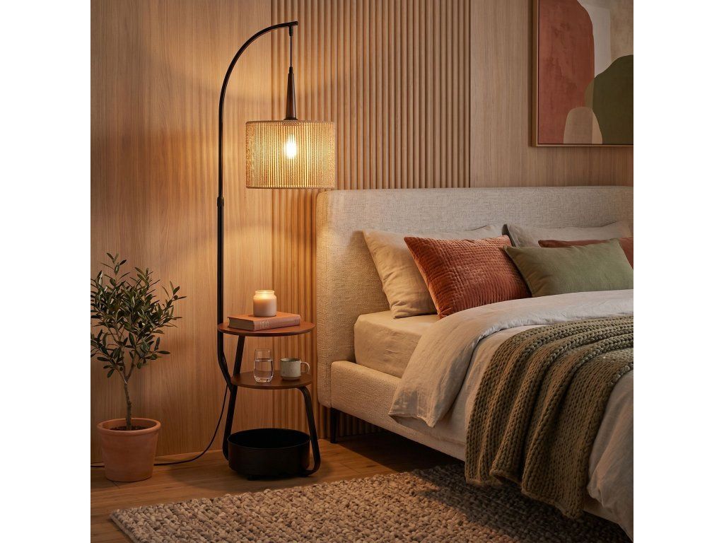 Stojací podlahová lampa je funkční a dekorativní osvětlení, které se bude skvěle hodit do obývacího pokoje, ložnice nebo relaxační zóny. Její moderní tvar s nádechem boho stylu kombinuje praktičnost s útulným, přirozeným vzhledem.