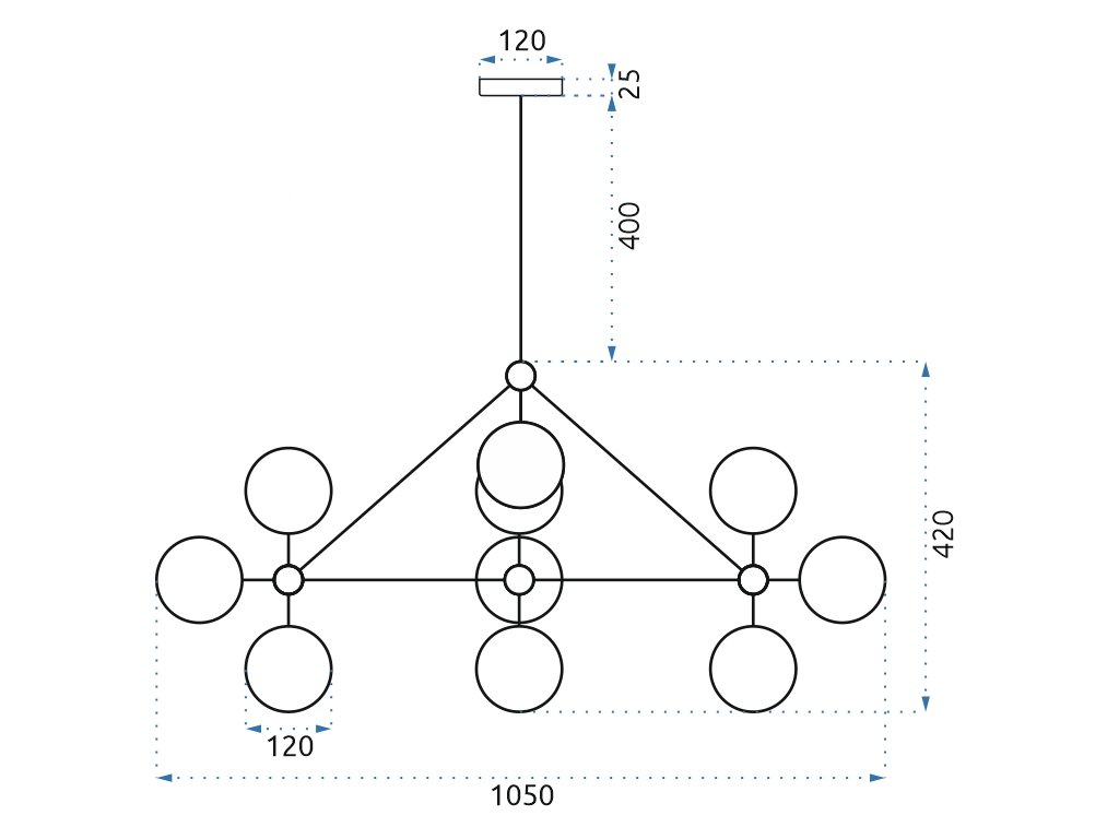 Představená lampa je jistě odvážnou volbou – není těžké si všimnout, že náš výrobek na sebe okamžitě upozorní. To vše díky mimořádně mnoha ramenům zakončeným závitem pro žárovku, což znamená, že lampa může napájet až deset světelných bodů!