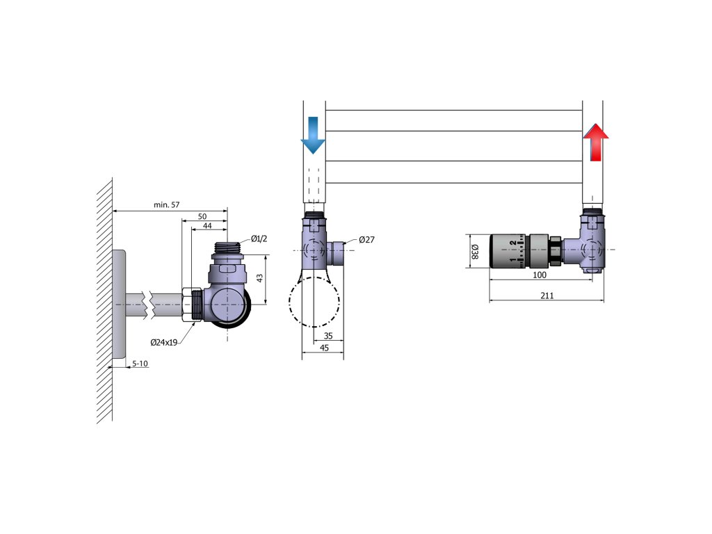 CORNER COMBI připojovací sada ventilů termostatická triaxiální, pravé provedení, chrom