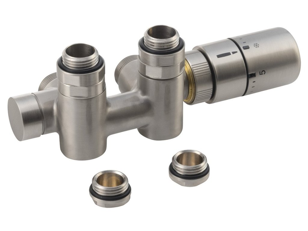 TWIN COMBI připojovací sada ventilů termostatická pro středové připojení, pravá, nerez mat