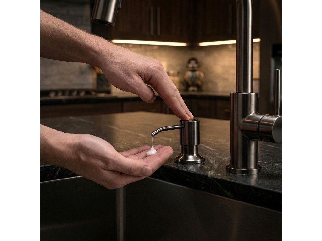 Vsaďte ve své kuchyni na maximální funkčnost a estetiku výběrem dávkovače na tekutiny a mýdlo REA Lon. Tento praktický doplněk umožňuje elegantně ukrýt detergenty a eliminuje nutnost mít plastové lahve na pracovní desce. Dávkovač je vyroben s důrazem na detail, dokonale ladí s moderními aranžemi a zajišťuje pohodlí při každodenních domácích pracích.Objem 300 ml – optimální velikost nádržky znamená, že nemusíte tekutinu často doplňovat, což výrazně zvyšuje komfort používání.Montáž do dřezu – umístění dávkovače do určeného otvoru šetří cenné místo na kuchyňské desce a pomáhá udržet dokonalý pořádek v okolí mycí zóny.Praktická odměrka na lahvi – poloprůhledná nádobka s přesnou stupnicí umožňuje neustálou kontrolu hladiny tekutiny, takže vždy víte, kdy je třeba ji doplnit.Dodatečné těsnění u závitu – pevné zabezpečení zaručuje výjimečnou těsnost a stabilitu montáže, čímž chrání skříňku pod dřezem před náhodným navlhnutím.Sladěná barevnost – pečlivě zvolená povrchová úprava umožňuje snadno přizpůsobit produkt barvě vašeho dřezu i ostatním prvkům kuchyňského vybavení.