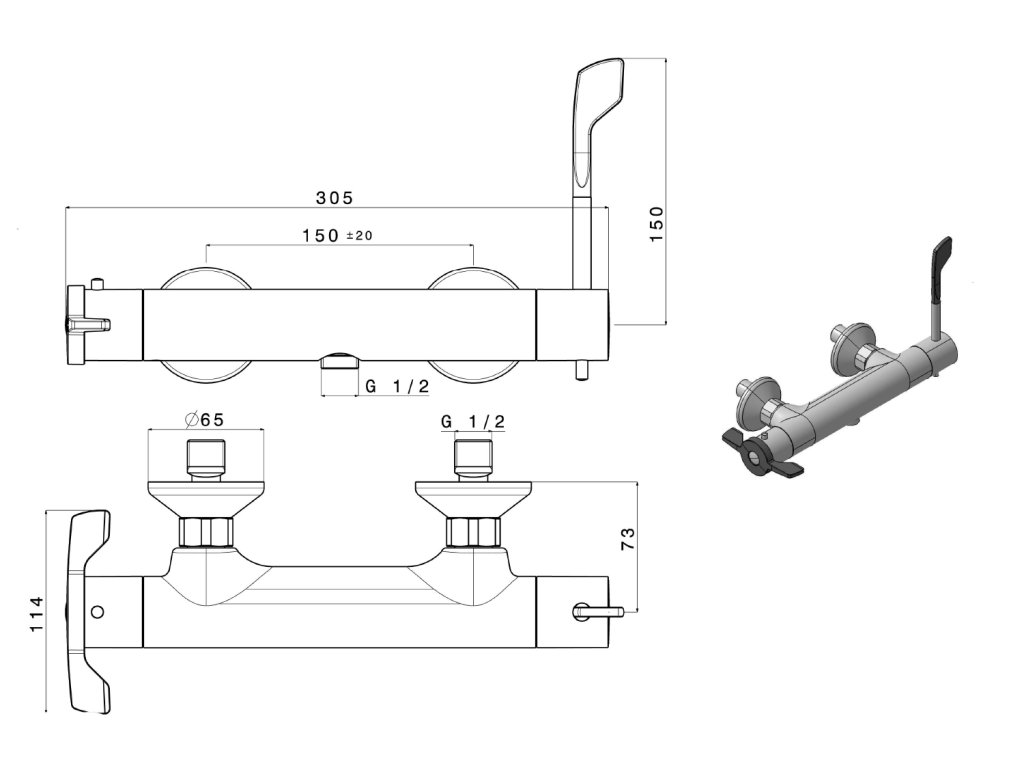 LEA nástěnná sprchová termostatická baterie, lékařská páka, chrom