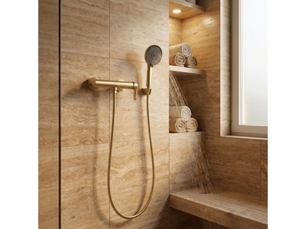 Vanová baterie Rea Arcos v provedení Kartáčované zlato (Brushed Gold) je luxusní prvek vybavení, který kombinuje šperkovou estetiku s výkonem materiálového inženýrství. Tělo z vysoce kvalitní nerezové oceli v kombinaci s matným zlatým leskem vytváří produkt, který nejen nadchne vzhledem, ale je prakticky nezničitelný. Ideální volba pro koupelny v glamour, moderním i art déco stylu.Konstrukce z nerezové oceli – srdcem baterie je ušlechtilá ocel s nejvyšší hustotou, což zaručuje úplnou odolnost proti korozi a mechanickému poškození. Materiál třídy premium pro dlouhou životnost.Ušlechtilé kartáčované zlato – matný povrch dodává baterii sofistikovaný charakter bez křiklavého lesku. Povrch je praktický, protože účinně maskuje otisky prstů a zaschlé kapky.Technologie PVD – zlatá barva je nanášena vakuovou metodou, díky čemuž je povlak extrémně tvrdý a trvale spojený s ocelovým podkladem. Baterie je odolná proti poškrábání a barva zůstává stálá po léta.Inteligentní výtok „2 v 1“ – inovativní řešení, kde pohyblivý výtok slouží jako přepínač. V poloze kolmo k tělu napouští vanu, při sklopení automaticky přesměruje vodu do sprchy.Designová sprchová hlavice – sada obsahuje plochou elegantní hlavici s funkcí Anti-Calc pro snadné odstranění vodního kamene.Keramická kartuše nejvyšší třídy – zajišťuje plynulou a přesnou regulaci teploty a proudu vody při zachování naprosté těsnosti.Kompletní montážní sada – balení obsahuje barevně sladěný držák sprchy a ohebnou hadici pro vytvoření sjednoceného vzhledu.Rea Arcos Kartáčované zlato redefinuje luxus. Spojením nerezové oceli a technologie PVD získáváte produkt, který je stejně funkční jako dekorativní.