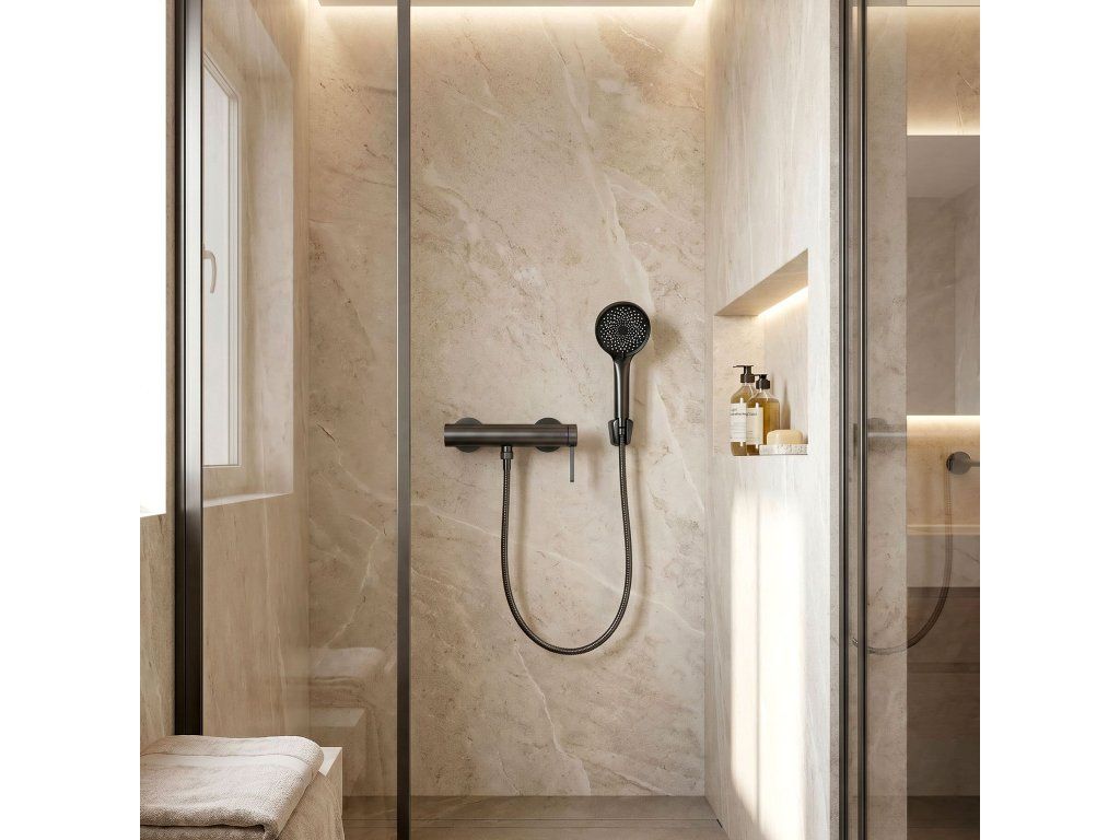 Objevte skutečný relax při každodenním sprchování výběrem sprchové baterie Rea Rivo, která vyniká moderní broušenou strukturou. Jde o ideální spojení stylu a funkčnosti, které nadchne každého uživatele. Tato armatura vytvořená s využitím technologie PVD zajišťuje mimořádnou odolnost a rezistenci vůči poškrábání. Její klasický design se dokonale začlení do elegantních interiérových stylů a dodá vaší koupací zóně jedinečný nádech luxusu.Praktická sprchová hlavice s přepínatelnými režimy umožňuje dokonale přizpůsobit proud vody vašim aktuálním potřebám.Dodatečná funkce bidetky integrovaná ve sprchové hlavici zaručuje pohodlí a usnadňuje péči o hygienu.Použitá technologie PVD vytváří mimořádně odolný povrch, který chrání set před poškozením a vyblednutím.Mimořádně praktický broušený povrch usnadňuje udržování čistoty a účinně maskuje vodní usazeniny i otisky prstů.Broušené provedení ideálně zapadající do rámce elegantních stylů interiéru, které zvyšuje prestiž koupelny.