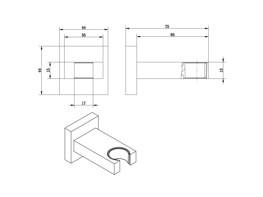Držák sprchy kulatý, pevný, s vyústěním, černá mat