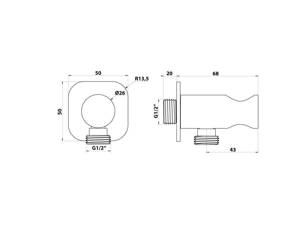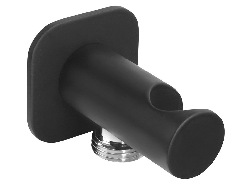 Držák sprchy hranatý, pevný, s vyústěním, černá mat