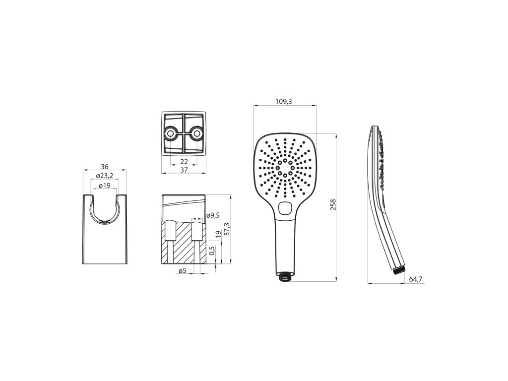 Sprchová souprava, 3 režimy sprchování, silikon trysky, pevný držák, hadice 1500mm, černá mat