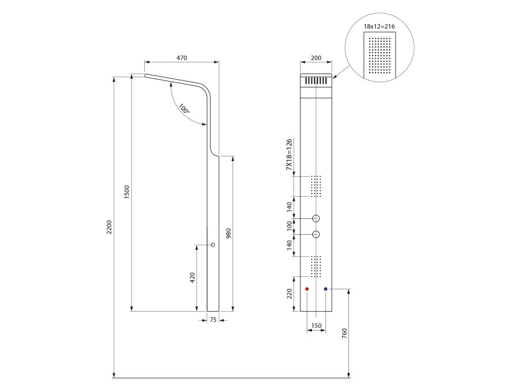 Sanjet PRISMA 140 Sprchový panel nástěnný, termostatická baterie, chrom, P4TN
