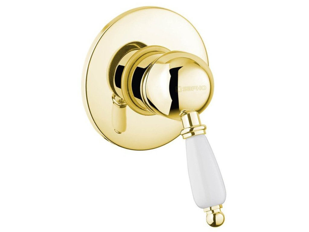 KIRKÉ WHITE podomítková sprchová baterie, 1 výstup, bílá páčka, zlato