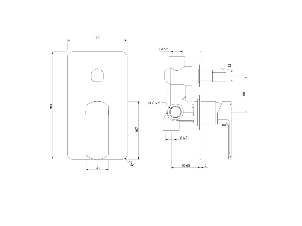 MIXONA podomítková sprchová baterie, 2 výstupy, chrom