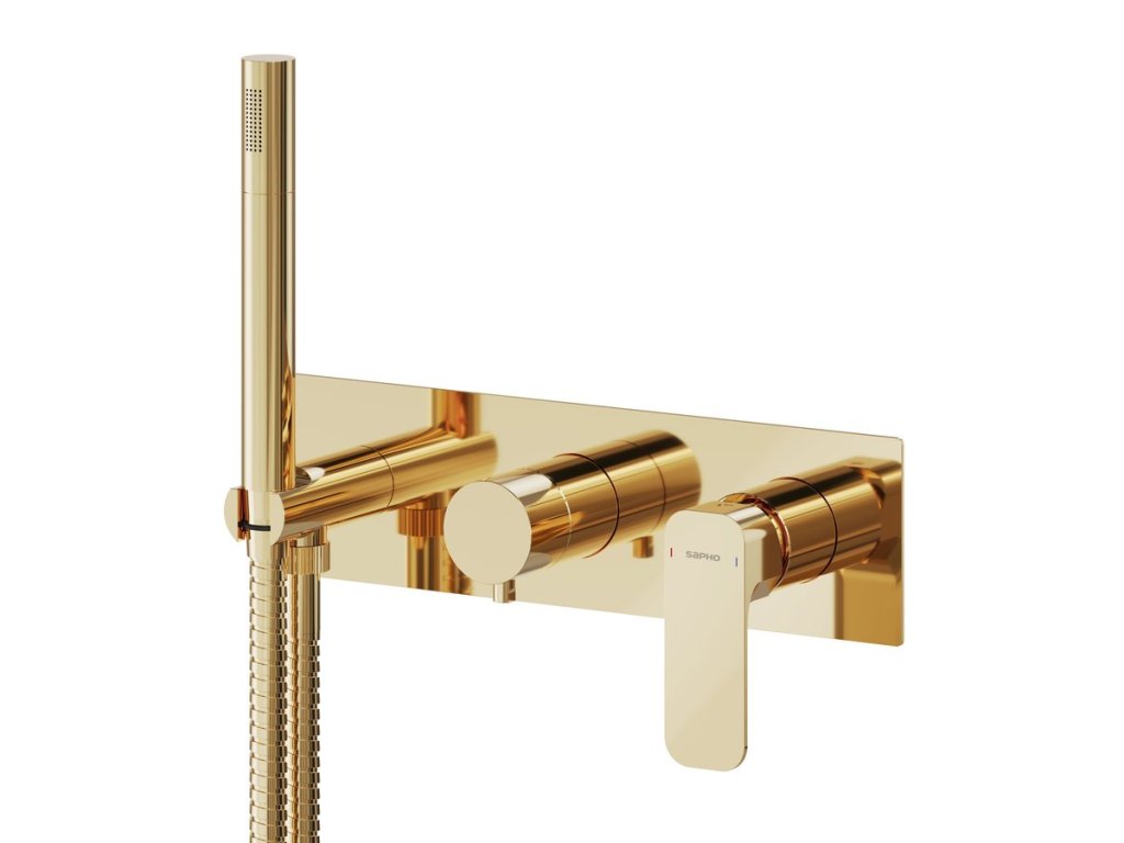 SPY podomítková sprchová/vanová baterie s ruční sprchou, 2 výstupy, zlato