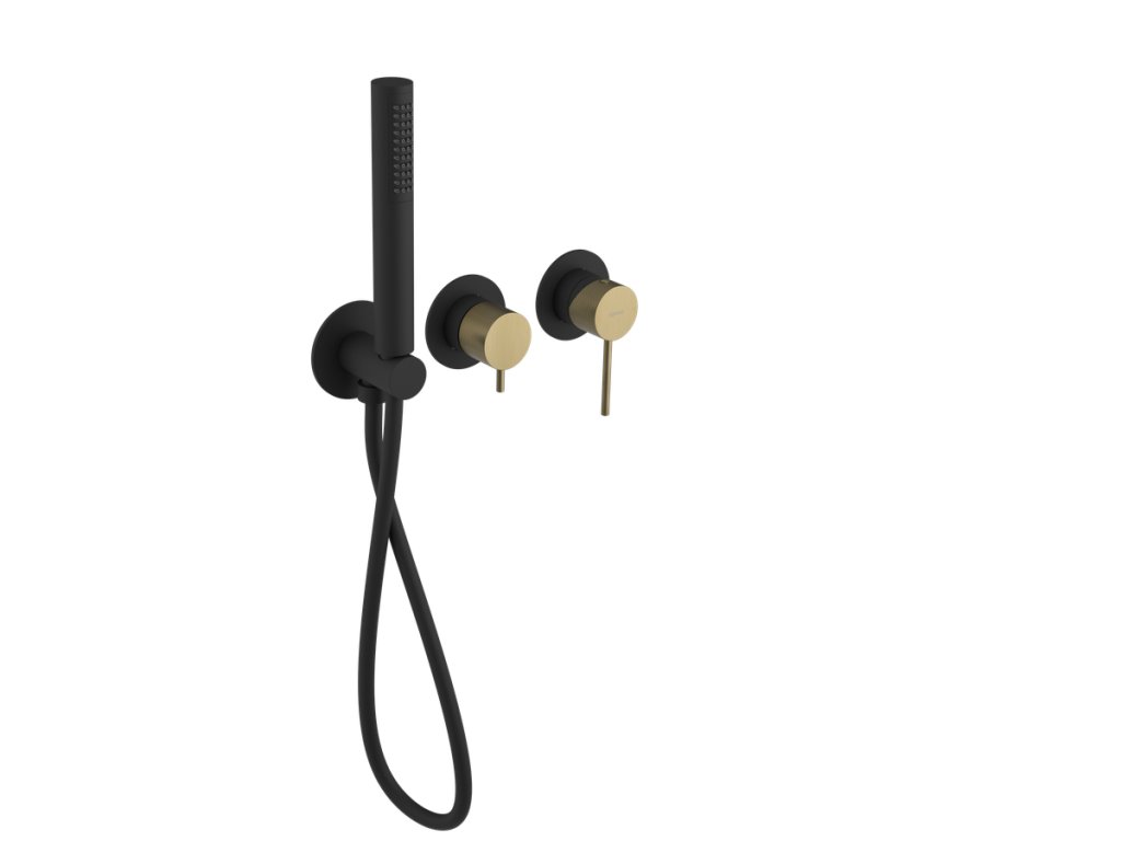 ULTRASAN podomítková sprchová/vanová baterie s ruční sprchou, 2 výstupy, černá mat/zlato mat