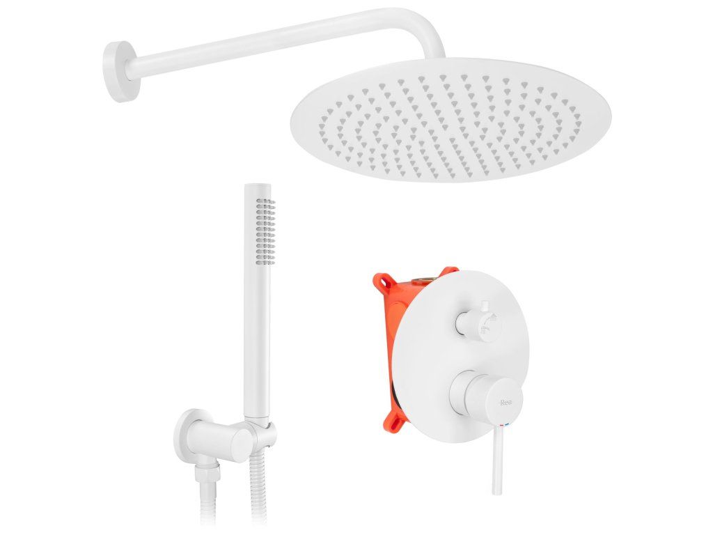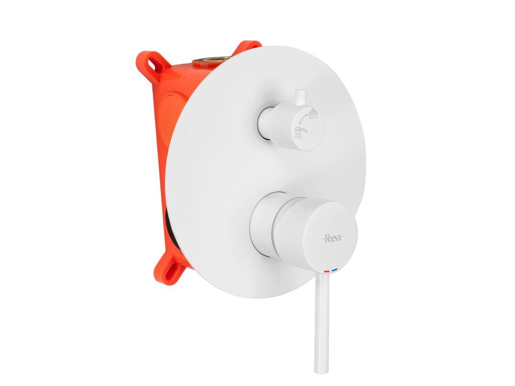 Podomítková vanová baterie série Rea Lungo je skvělá volba pro každého majitele koupelny. Módní tvar baterie vyrobené z vysoce kvalitní mosazi, byl potažen vysoce kvalitním čtyřvrstvým bílým lakem. Díky této technologii a metodě lakování je baterie chráněna proti korozi, otiskům prstů, pošpinění a ztráty zabarvení. Tento model je určen pro montáž na stěnu.