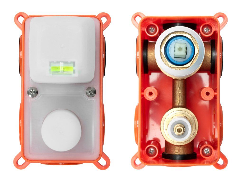 Představujeme Vám inovaci v instalaci podomítkových systému. Díky této technologii se baterie instaluje pod omítku (box), který zajišťuje pohodlnou a rychlou instalaci. Box je vyroben z plastu a mosazných vnitřních prvků, což garantuje vysokou kvalitu a především spolehlivost. Box je vybaven dílem, pod kterým jsou vidět vnitřní díly daného systému. Dále je box vybaven vodováhou pro snadnou a především přesnou instalaci. Box umožňuje též snadný příštup k vnitřním součástem baterie po instalaci za účelem údržby.