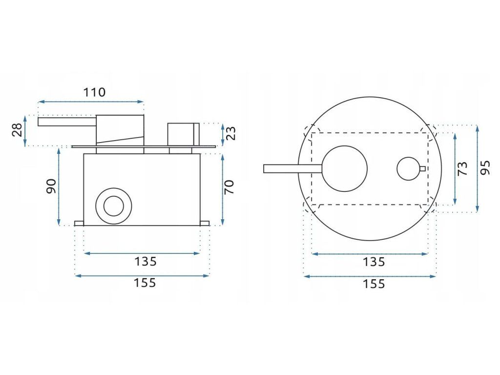 - Díl skrývající vnitřní části systému včetně vodováhy pro přesnou instalaci