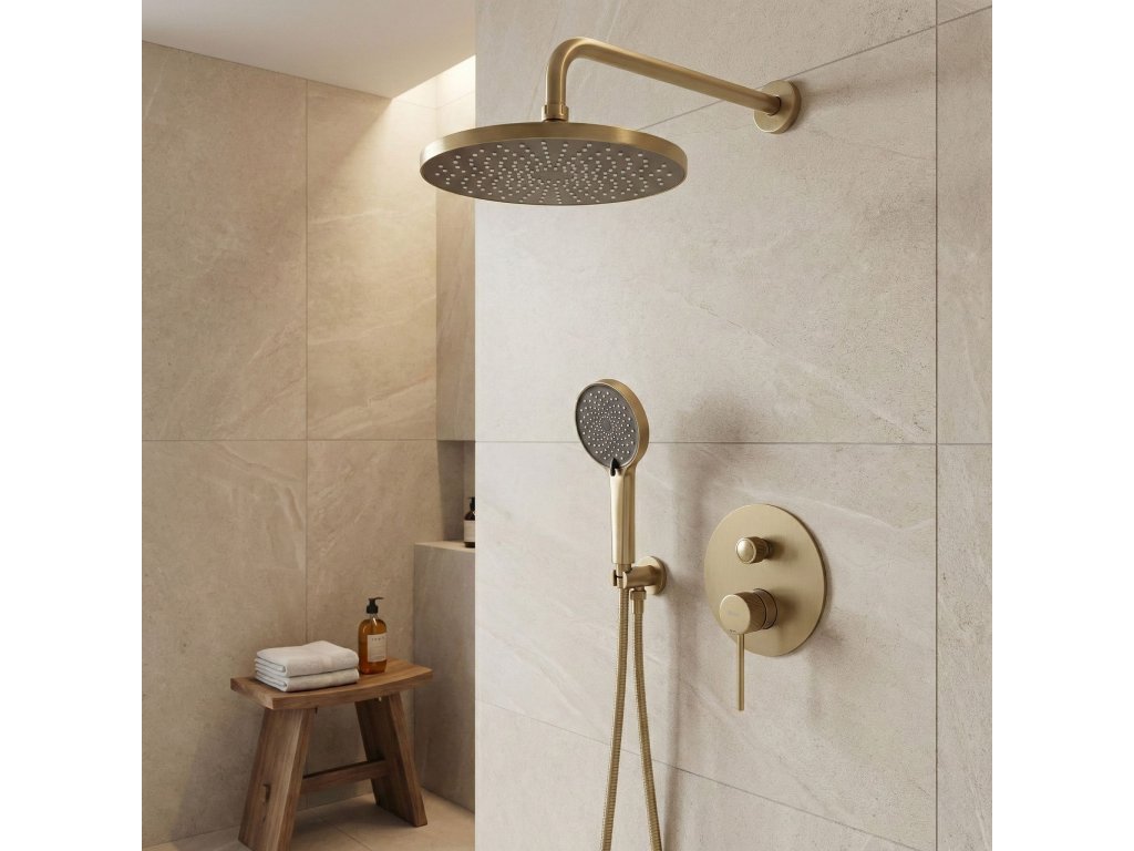 Podomítková sprchová sada Rea Lungo Stripe v barvě broušeného zlata je moderní řešení navržené pro uživatele, kteří očekávají spolehlivost a elegantní vzhled. Teplý odstín zlata v kombinaci s jemným broušením a výrazným rýhováním detailů dodává koupelně prestižní a luxusní charakter.Dekorativní rýhování Stripe – charakteristické drážky na ovladačích baterie jsou stylovým detailem, který přitahuje pozornost a zajišťuje pevný úchop při ovládání proudu vody mokrou rukou.Moderní podomítkový systém BOX – estetická instalace umožňuje skrýt připojení ve stěně. Inovativní kazeta (Box) usnadňuje montáž a zajišťuje pohodlný servisní přístup v budoucnu bez nutnosti sekání obkladů.Povrch v barvě broušeného zlata – odolný matný povrch účinně maskuje otisky prstů a dodává interiéru eleganci a styl. Perfektně ladí s dalšími prvky série Lungo.Hlavová sprcha se širokým proudem – plochá kulatá hlavice na nástěnném rameni zajišťuje rovnoměrný a relaxační proud vody. Součástí sady je také praktická ruční sprcha s flexibilní hadicí.Odolné materiály – sada je vyrobena z vysoce kvalitní mosazi a odolných materiálů, což zaručuje plnou odolnost vůči vlhkosti a korozi a dlouhou životnost.Systém Anti-Calc – silikonové trysky ve sprše a ruční hlavici zabraňují usazování vodního kamene a výrazně usnadňují čištění.Výběrem kompletní sprchové sady Lungo Stripe se systémem Box investujete do chytrého řešení spojujícího špičkovou estetiku, bezpečnost a komfort. Minimalistický tvar a rýhované detaily dokonale doplní každou stylovou koupelnovou zónu.