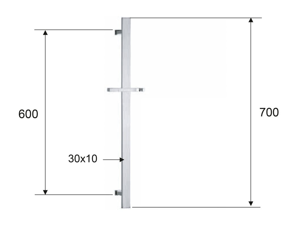 Sprchová tyč, posuvný držák, hranatá, 700 mm, černá mat