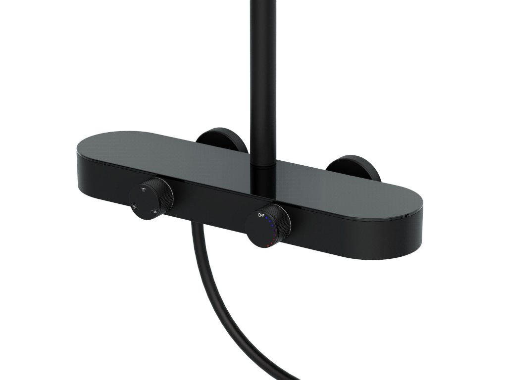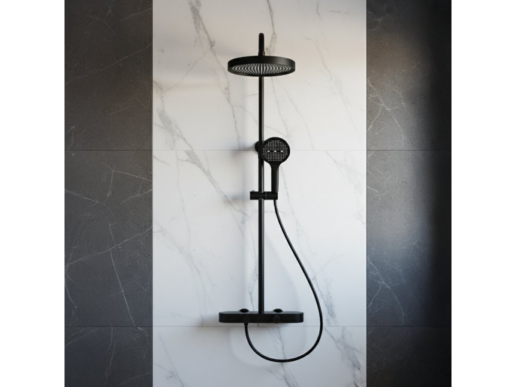 Sprchová souprava REA Creo Black je moderní nástěnné řešení, které kombinuje elegantní matnou černou s pohodlím každodenního používání. Model byl navržen s důrazem na funkčnost a estetiku, díky čemuž skvěle zapadá do moderních, loftových i industriálních interiérů.Plynulé ovládání pomocí otočných knoflíků – baterie je vybavena dvěma ergonomickými knoflíky. První umožňuje přesné a pohodlné nastavení teploty vody, druhý slouží k přepínání režimů proudu mezi hlavovou sprchou, ruční sprchou a výtokem.Ruční sprcha s funkcí Bidetta – praktická ruční sprcha má tlačítko na zadní straně těla a další vývod nahoře. Po aktivaci může sloužit jako bidetová sprška, což usnadňuje rychlé opláchnutí kabiny, umytí vaničky nebo naplnění vysokého kbelíku.Diskrétní kaskádový výtok – integrovaný vanový výtok poskytuje široký kaskádový proud, který se hodí při mytí rukou nebo plnění nádoby bez použití ruční sprchy.Technologie Electroplating – hluboká matná černá byla dosažena metodou galvanizace. Povrch je hladký, odolný a rezistentní vůči vlhkosti i každodennímu používání.Pevná konstrukce – tělo baterie je vyrobeno z odolné mosazi, což zajišťuje stabilitu a dlouhou životnost. Hlavová i ruční sprcha z ABS jsou lehké, praktické a snadno se udržují.Komfortní přizpůsobení – výškově nastavitelná tyč umožňuje přizpůsobit polohu hlavové sprchy výšce uživatelů i uspořádání sprchové zóny.REA Creo Black je promyšlená sprchová souprava pro ty, kteří očekávají moderní vzhled a pohodlné ovládání. Funkční řešení a odolné materiály dělají každodenní sprchování komfortnější a intuitivnější.