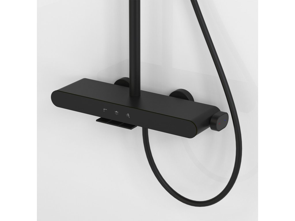 Objevte nový standard sprchování díky nástěnné sprchové soupravě Rea Farel Black. Tento model je esencí moderního designu, který spojuje eleganci černé armatury s inovativní funkčností. Místo běžných řešení nabízí Farel pohodlné tlačítkové ovládání a unikátní prvky, které usnadňují udržení čistoty v koupelně.Intuitivní panel Piano – srdcem soupravy je baterie vybavená systémem estetických tlačítek. Ta umožňují rychlé a pohodlné přepínání proudu vody mezi hlavovou sprchou, ruční sprchou a výtokem.Ruční sprcha s funkcí Bidetta – revoluční řešení v oblasti sprchových armatur. Ruční sprcha má tlačítko na zadní straně těla a dodatečný vývod nahoře. Po aktivaci se změní na bidetovou spršku, ideální pro rychlé opláchnutí kabiny, umytí vaničky nebo naplnění vysokého kbelíku.Diskrétní kaskádový výtok – baterie má také integrovaný vanový výtok. Široký kaskádový proud umožňuje pohodlně umýt ruce nebo naplnit misku bez použití ruční sprchy.Technologie Electroplating – hluboká matná černá byla dosažena galvanickým procesem. Díky tomu je povrch dokonale hladký, odolný a výrazně odolnější vůči mechanickému poškození a vlhkosti než tradiční práškové lakování.Pevná konstrukce – tělo baterie je vyrobeno z odolné mosazi, což zaručuje stabilitu a spolehlivost po mnoho let. Hlavová i ruční sprcha z ABS zajišťují lehkost a snadné čištění trysek od vodního kamene.Komfort používání – souprava je vybavena výškově nastavitelnou tyčí, která umožňuje ideálně přizpůsobit hlavovou sprchu výšce každého člena domácnosti i rozměrům sprchového koutu.Souprava Rea Farel Black je ideální volbou do moderních koupelen ve stylu loft a industrial. Její promyšlená konstrukce zjednodušuje každodenní rituály.