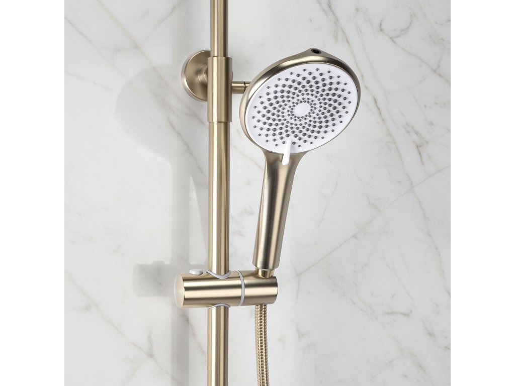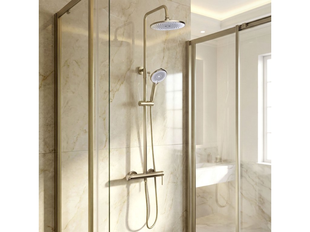Hledáte funkční a stylové řešení pro svou sprchovou zónu? Seznamte se s nástěnným sprchovým setem Rea Foss Clif v moderním provedení Kartáčované Zlato. Ideální volba pro ty, kteří oceňují minimalistický design a promyšlené funkce. Pevné mosazné tělo baterie a nastavitelná výška dešťové sprchy poskytují pohodlí při používání.Barva Kartáčované Zlato – elegantní povrch (v technologii PVD), který skvěle ladí s moderními koupelnami.Mosazné tělo baterie – zaručuje pevnost konstrukce a odolnost při každodenním používání.Multifunkční ruční sprcha – nabízí nejen standardní režimy, ale také inovativní proud typu „bidetka“ umístěný v horní části sprchy, což výrazně zvyšuje funkčnost koupelny.Keramická kartuše – přesný mechanismus umožňující plynulou regulaci teploty a průtoku vody.Systém Anti-Calc – trysky ve sprše a dešťové hlavici usnadňují odstraňování vodního kamene.Nástěnná montáž – standardní rozteč 150 mm umožňuje snadnou a rychlou instalaci.Sprchový set Rea Foss Clif je skvělou volbou pro ty, kteří si cení moderního designu a nadstandardní funkčnosti. Tento set REA zvyšuje komfort každodenního sprchování a dodá vaší koupelně spolehlivost i stylový vzhled.