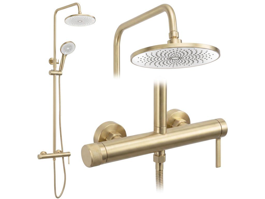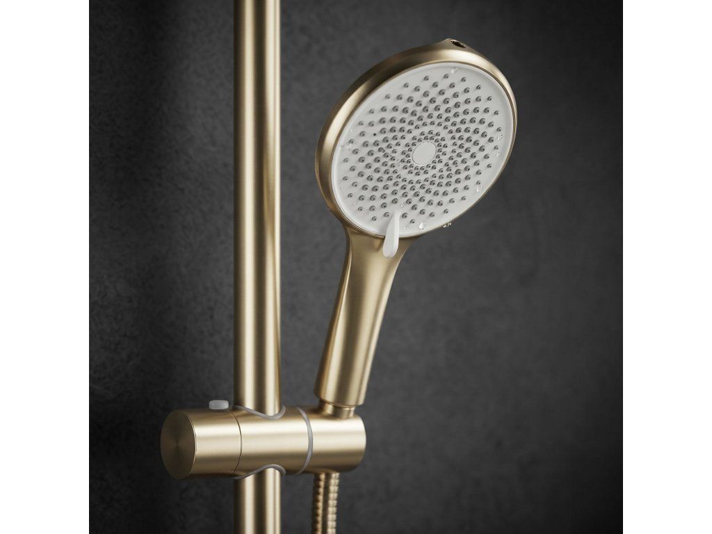 Hledáte funkční a stylové řešení pro váš sprchový kout? Podívejte se na nástěnný sprchový set Rea Rivo v moderní povrchové úpravě Brushed Gold. Je to ideální nabídka pro lidi, kteří ocení minimalistický design a promyšlené funkce. Pevné mosazné tělo baterie a nastavitelná výška dešťové sprchy zajišťují komfort používání.Barva Brushed Gold – estetická povrchová úprava (v technologii PVD), která se dokonale hodí k moderním aranžmá.Tělo baterie z mosazi – zaručuje pevnost konstrukce a odolnost vůči každodennímu používání.Multifunkční sprchová hlavice – nabízí nejen standardní režimy, ale také inovativní proud typu „bidetka“ umístěný na horní straně hlavice, což výrazně zvyšuje funkčnost koupelny.Keramická kartuše – přesný mechanismus umožňující plynulou a pohodlnou regulaci teploty a síly proudu vody.Systém Anti-Calc – trysky ve sprchové hlavici a dešťové sprše usnadňují odstraňování usazenin vodního kamene, což pomáhá udržovat set v čistotě.Nástěnná montáž – standardní rozteč připojení 150 mm umožňuje snadnou a rychlou instalaci.Sprchový set Rea Rivo je vynikající volbou pro lidi, kteří ocení moderní design a nadprůměrnou funkčnost. Tento set REA zvyšuje komfort každodenného koupání a nabízí spolehlivost a stylový vzhled vaší koupelně.