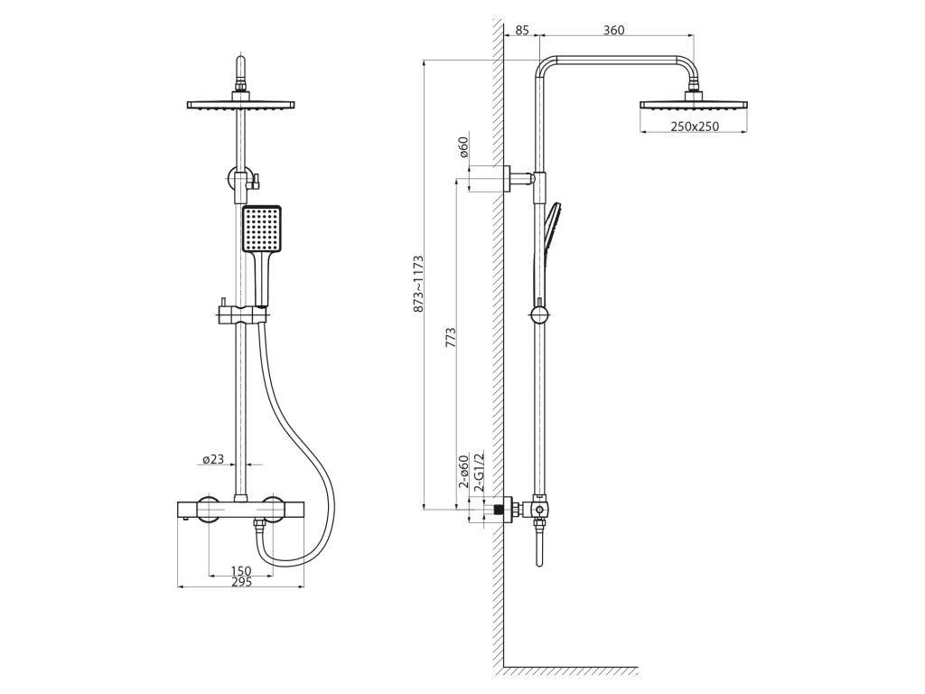 Sprchový set s termostatem REA VINCENT NICKEL BRUSH INOX