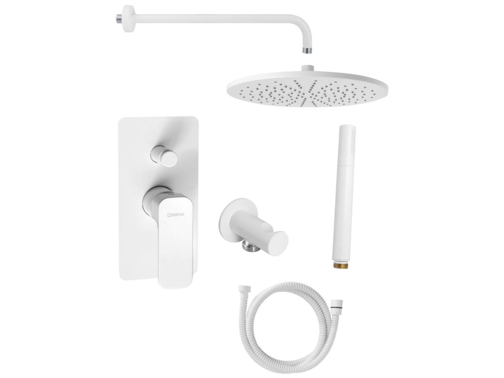 SPY podomítkový sprchový set s pákovou baterií, otočný přepínač, 2 výstupy, bílá mat