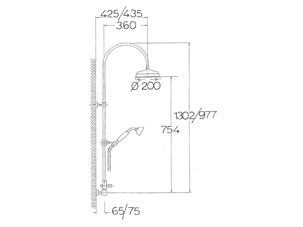 VANITY sprchový sloup k napojení na baterii, hlavová, ruční sprcha, zlato