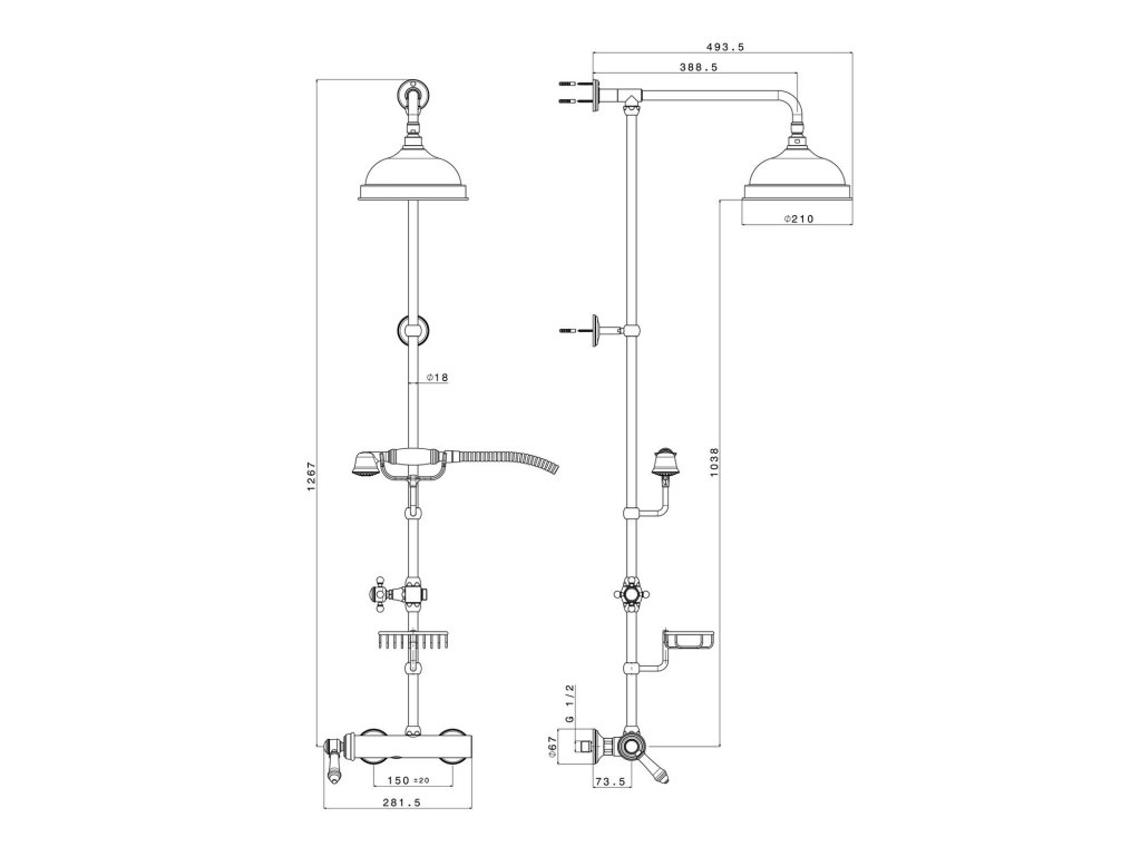 VIENNA sprchový sloup s pákovou baterií, mýdlenka, 1267mm, chrom