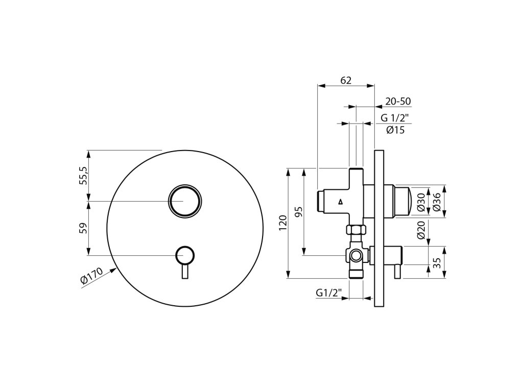 TEMPOR samouzavírací podomítkový sprchový ventil s regulací teploty, chrom