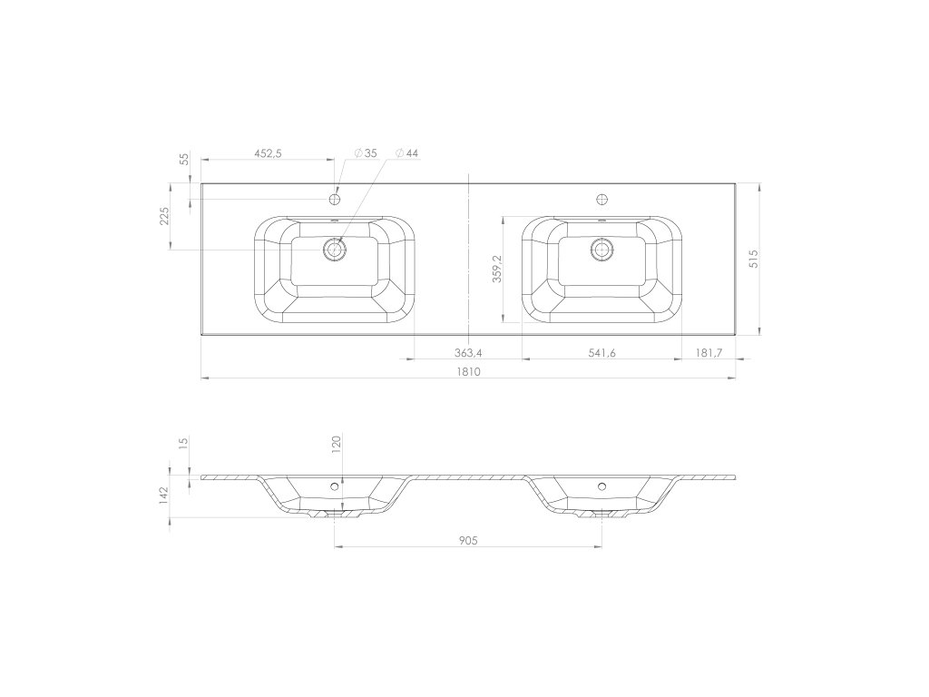 ARECA dvojumyvadlo, litý mramor, 181x51,5cm, bílá