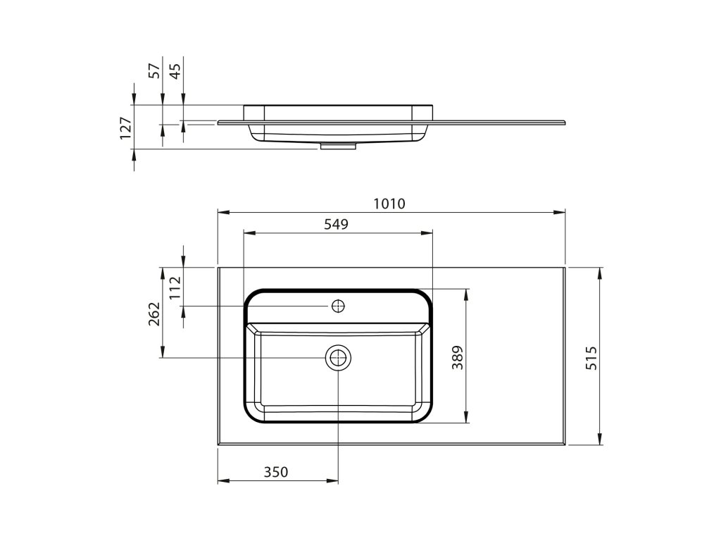 BRAHEA umyvadlo 101x51,5cm (70+30cm), levé, bílá mat