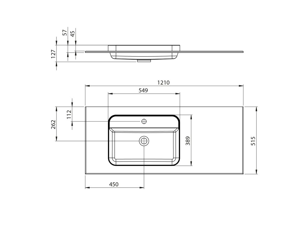 BRAHEA umyvadlo 121x51,5cm (90+30cm), levé, bílá mat